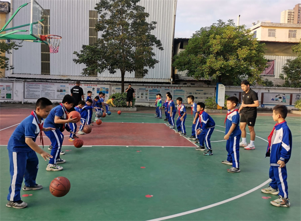 篮球场上,教练正循序渐进地指导学生掌握篮球基本技能。从规范运球姿势到精准传球技巧,再到基础投篮动作的矫正,每一个教学环节都细致入微。学生们认真投入,反复练习每一个动作。汗水浸湿了衣衫,却丝毫未减他们的热情,每一次成功的运球、传球与投篮,都展现出他们的努力与坚持,也让团队协作意识在实践中不断增强。
