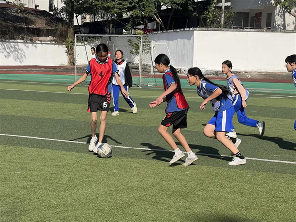 活动期间,开幕式庄重有序,校长、裁判员寄语赋能,运动员代表宣誓践行体育精神,拉开赛事帷幕。班级联赛阶段,各班队员默契配合、奋勇拼搏,精准传球、灵活盘带、奋力抢断等精彩瞬间不断上演,男女生不同风格的赛场表现赢得全场喝彩。赛场上既有进球夺冠的狂喜,也有互助鼓励的温暖,充分展现了“比赛有输赢,成长不含糊”的体育内涵。活力四射的班级啦啦队以热情呐喊助力赛事,成为绿茵场边的靓丽风景线。